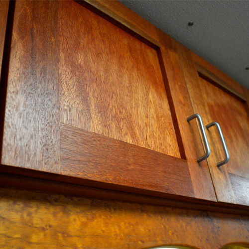 Color: Dark red Sapwood: Clearly Demarcated Texture: Medium to Coarse Grain: Straight or Interlocked